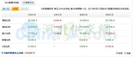 各大站長工具為我們總結(jié)了近日的收錄巨變,在抽樣調(diào)查的近百萬網(wǎng)站中各大搜索引擎收錄如下圖: