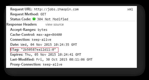 我們看到,ETag中包含了一連串的數(shù)據(jù),這就是計(jì)算出來的一個(gè)值,如果它發(fā)生變化,說明其頁面內(nèi)容一定發(fā)生了變化。如果頁面沒有發(fā)生變化時(shí),頭信息應(yīng)該如下: